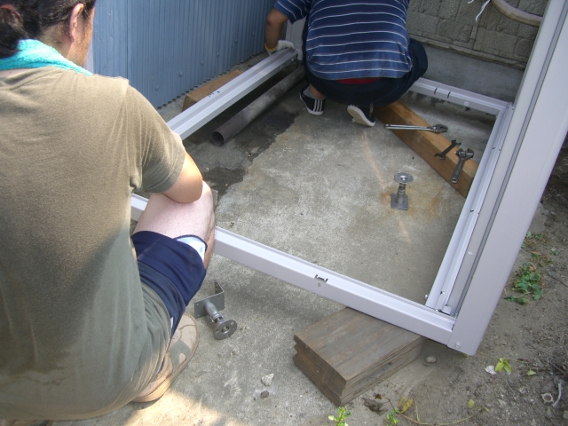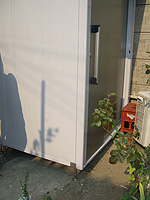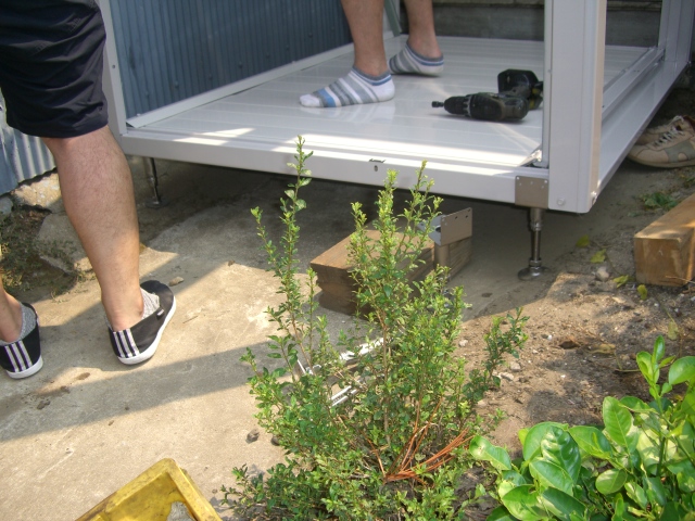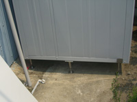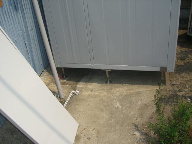 ◆傾斜地に物置を造る凸凹傾斜の地面に 傾斜タイプ(オールステンレス)を使い物置を作りました。 四隅を設置するだけで 重みで安定します。 (物置:縦1100×横1500×高さ2100) 傾斜地用床束ページに戻る