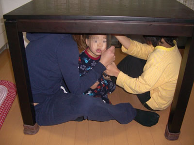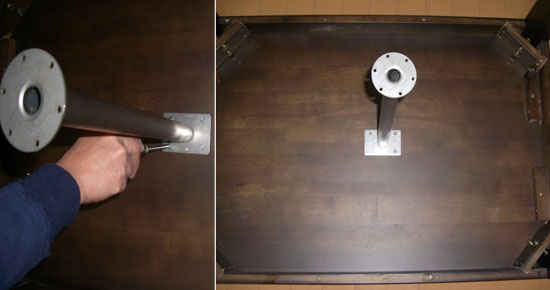 地震の際、中心の耐震棒を持つ事で縦、横揺れの強さに耐えテーブルからはじき出される心配はありません。 ◆取付手順